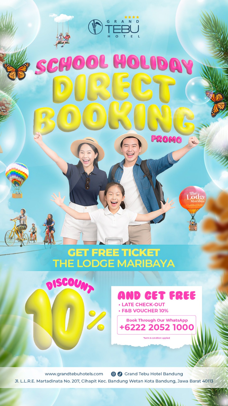 GRAND TEBU HOTEL, a place where modern comfort meets urban uniqueness in the center of Bandung. Strategically located in the middle of a peaceful and cool city, we make it the perfect choice for those of you who want a special and memorable stay in the city of Bandung.
